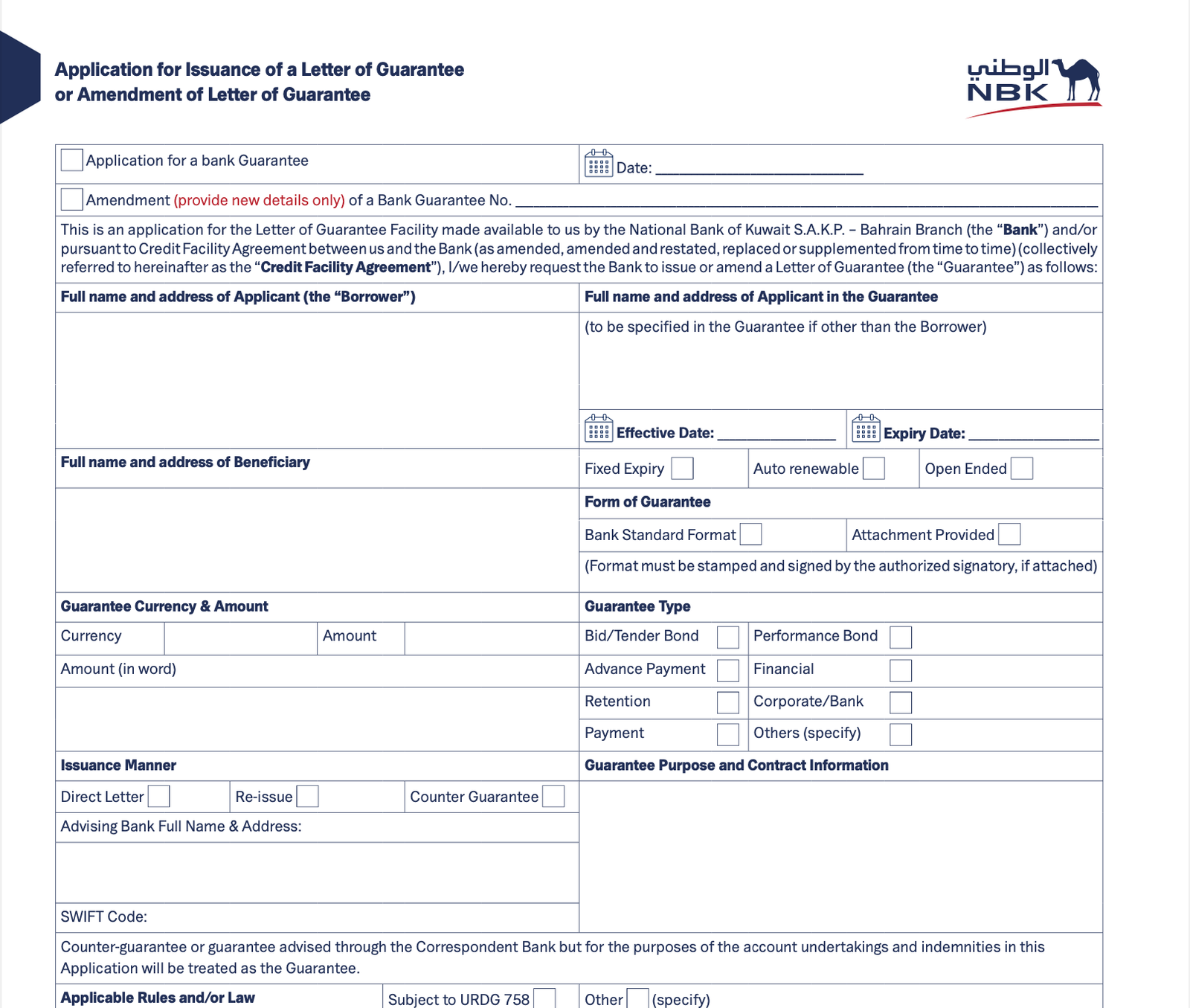 نموذج تقديم طلب خطاب الضمان في البحرين pdf word