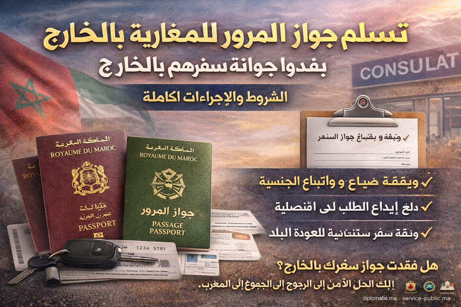 قد يتعرض بعض المغاربة المقيمين أو المسافرين بالخارج لفقدان جواز السفر أو سرقته، مما يضعهم في وضعية صعبة تمنعهم من العودة إلى المغرب. في هذه الحالة توفر القنصليات المغربية حلاً…