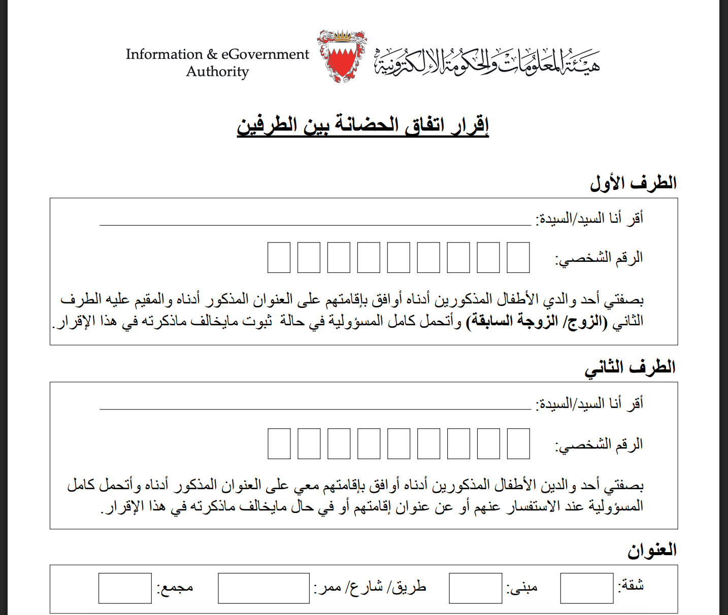 تحميل نموذج إقرار اتفاق الحضانة PDF