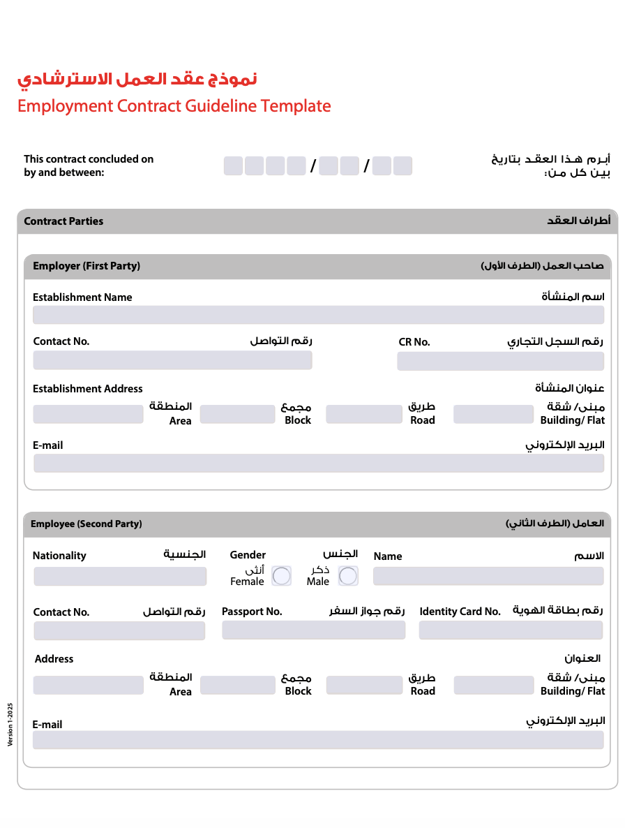 لتعبئة نموذج عقد العمل الاسترشادي في البحرين بشكل صحيح يجب اتباع الخطوات التالية: