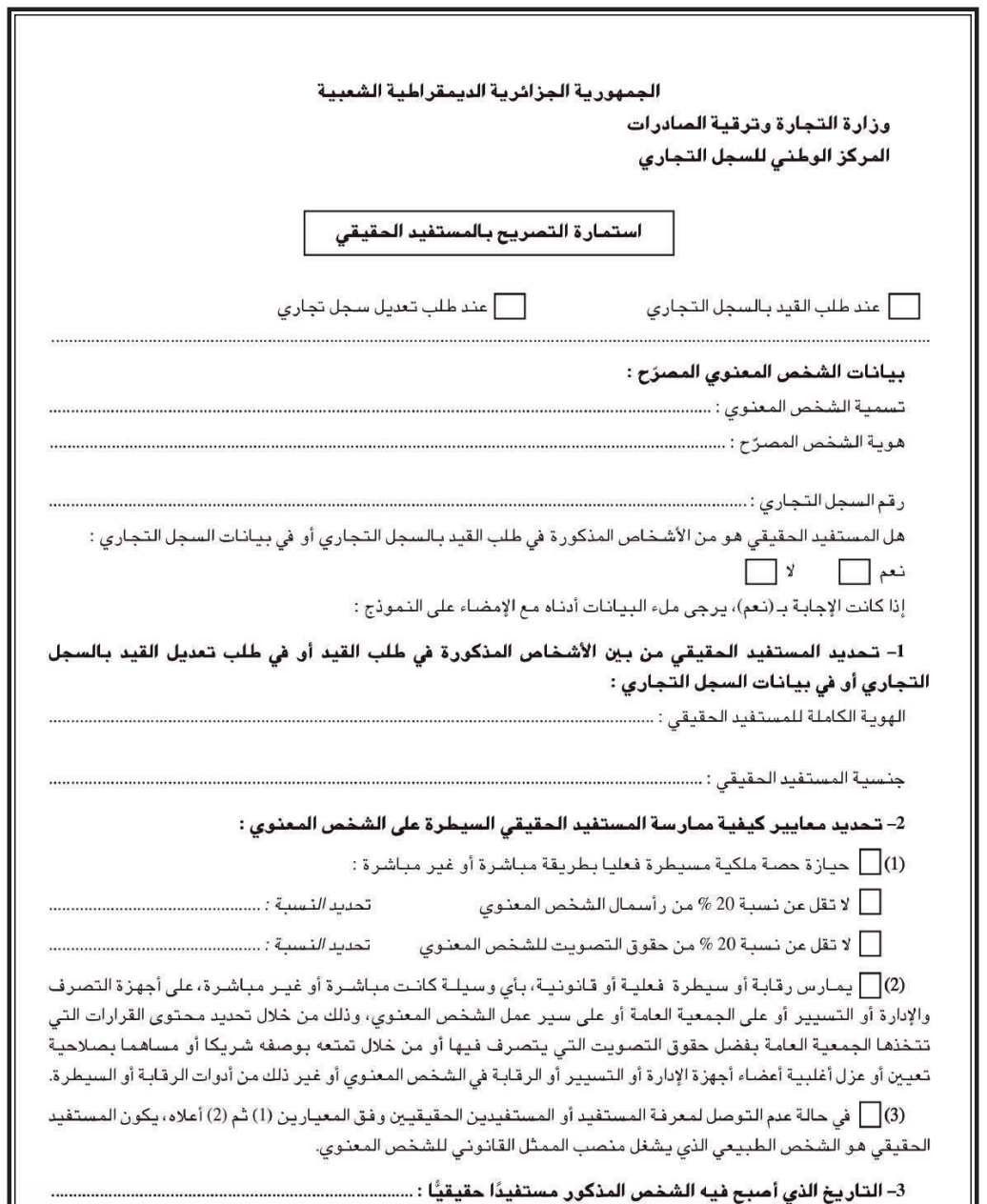 تحميل إستمارة التصريح بالمستفيد الحقيقي PDF