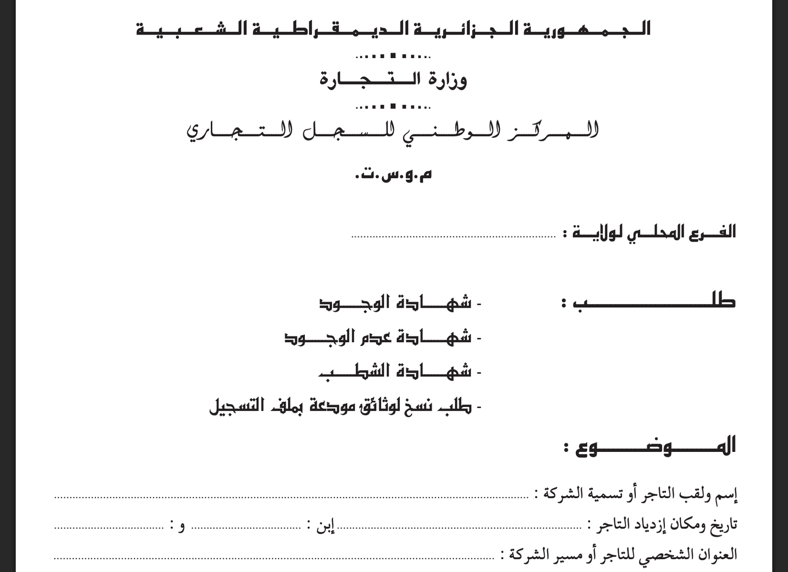 تخضع التسميات التجارية للمرسوم التنفيذي المنظم للسجل التجاري والقانون المتعلق بحماية الملكية الصناعية. يمكنك تحميل النماذج والقيام بالبحث الأولي عبر الموقع الرسمي للمركز الوطني للسجل التجاري. كما تنشر الجريدة الرسمية قائمة الأسماء المحظورة أو المحفوظة للدولة. وفي حالات النزاع حول الاسم بين الشركاء، قد يُطلب الترخيص الأبوي أو عقود توثيقية إضافية لفض النزاع لعام 2026.