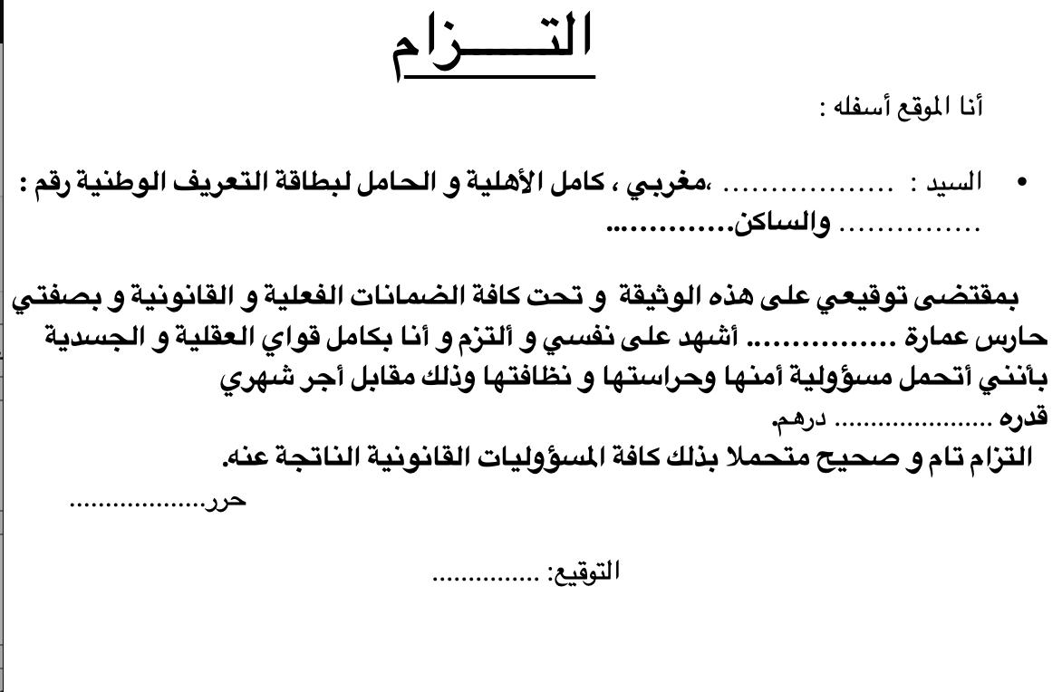 نموذج التزام حارس عمارة 2026: تحميل Word ودليل السانديك بالمغرب