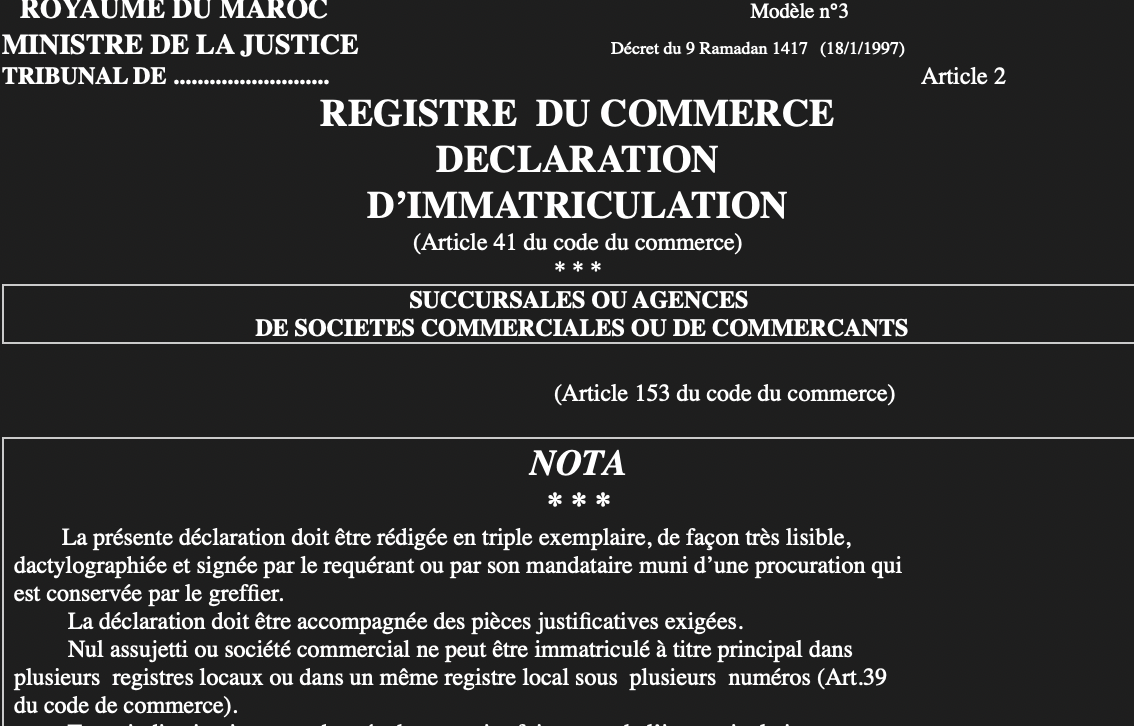 يعد هذا النموذج من أهم نماذج REGISTRE DU COMMERCE – السجل التجاري لأنه يمثل الأساس القانوني لتأسيس الشركات داخل المغرب، سواء كانت شركات صغيرة ناشئة أو مؤسسات استثمارية كبيرة.