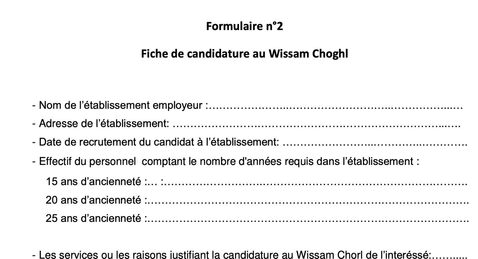 تحميل استمارة الترشيح وسام الشغل PDF